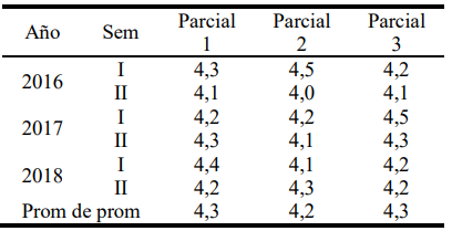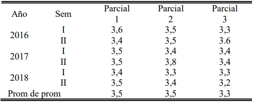 Si se analizan los resultados presentados tanto en la tabla I como en la tabla II se puede observar que, en todo momento, las notas de las pruebas escritas parciales en los subgrupos en los cuales se adoptaron las estrategias motivadoras orientadas son superiores que los grupos en donde estas estrategias no se utilizaron. El promedio de los promedios de las notas en la tabla I, en cada prueba parcial, es superior a cada una de las notas equivalentes que se presentan en la tabla II. De esta forma, la terna [4.3, 4.2, 4,3] en la última fila de la tabla corresponde al promedio de las notas de las evaluaciones parciales de los estudiantes con los cuales se adoptaron las estrategias motivadoras orientadas y la terna [3.5, 3.5, 3.3] corresponde al promedio de las notas equivalentes obtenidas por los estudiantes que presentaron las pruebas parciales por el método tradicional, es decir, sin uso de estrategias motivadoras orientadas.