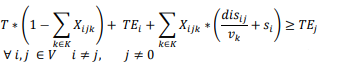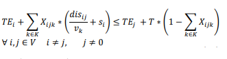 ; (11) y (12) asegura que el tiempo de ruta que un vehículo lleva al llegar al nodo