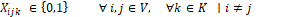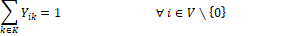 sean igual a 1, si la parada es visitada; (5) asegura que todos los vehículos habilitados inicien su recorrido en la escuela; (6) asegura que cada parada no sea visitada más de una vez a excepción de la escuela.