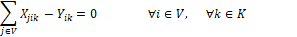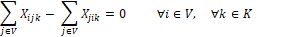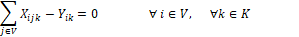Las restricciones (7) y (8) aseguran que los niños que un vehículo lleve al llegar al nodo sea igual a la suma de los niños que llevaba al llegar a