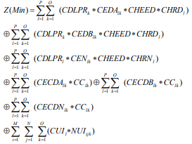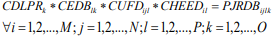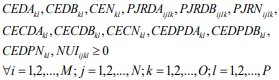 (13)Restricción de no negatividad. La expresión (14) hace referencia a que las variables de decisión del modelo no deben ser negativas.