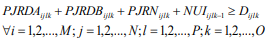 PJRDAijlk = Producción en jornada regular diurna del turno A de la referencia i, de la parte j, en el proceso l para el período k