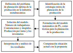 En la figura 2 se aprecia el proceso desarrollado en la investigación, para la solucionar el problema de planeación agregada de la producción en una industria metalmecánica.