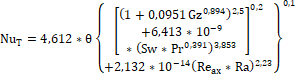 Elaboración propia.Las aplicaciones de los procesos térmicos generalmente se relacionan con la producción de vapor por calentamiento, fluidos en estados turbulentos o flujos laminares en presencia de turbuladores. Para analizar este tipo de fenómenos, se selecciona el parámetro de Temperatura de Pared Uniforme (Uniform Wall Temperature, UWT). Por eso la ecuación que describe el Nusselt del turbulador es descrita por [7] y [8].