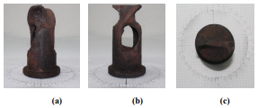 Para el caso de estudio se optó por un espacio cerrado, con luces artificiales tipo halógenas. El objeto se ubicó sobre un entorno blanco (mesa y fondo). La cámara permaneció estática sobre su eje trípode, y se roto el objeto de estudio cada 5°. Debido a la simetría del objeto se tomaron fotografías para la pieza rotada 180°, también se toma foto de la vista de techo, perpendicular al inicio y al final de la base.