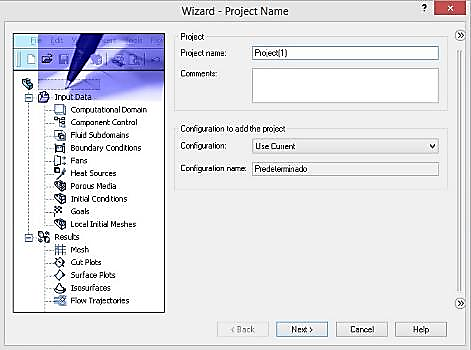 Como fase inicial se delimita el volumen de control, y se inicia el módulo de ayudante de simulación “Wizard”, seleccionando el sistema de unidades, y los mecanismos de transferencia de calor. Adicional se agrega el eje de referencia con respecto al objeto de estudio, y se definen los gases que intervienen en la simulación.