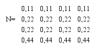 Weight (V) = (0,11+0,11+0,11+0,11)/4
