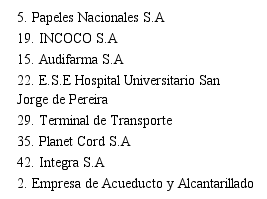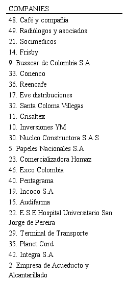 The companies were selected taking as a reference the publication “The 500 companies that make Risaralda big,” [13] from which the section “The 50 companies with the highest assets in Risaralda” was taken, to which the AHP method was applied.