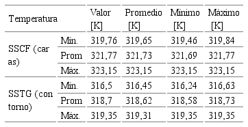 La herramienta CAD entrega los valores mínimos, máximos y promedio de la temperatura presente en las unidades durante el proceso de secado (Tabla II).