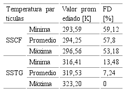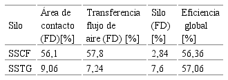 Con las temperaturas características obtenidas de la simulación (Tabla II) se hallan los valores del FD (Ec. 1) de los silos (Tabla III):