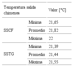 Con la eficiencia térmica global de los silos, se visualiza su comportamiento termodinámico general. Para hallar la eficiencia global se toma el silo como caja negra, con una temperatura de entrada inicial y una temperatura de salida en la chimenea, calculando la energía aprovechada dentro del mismo (Fig. 5). Del procesamiento en la herramienta CAD se obtiene la temperatura de salida de los silos en chimenea (Tabla VI).