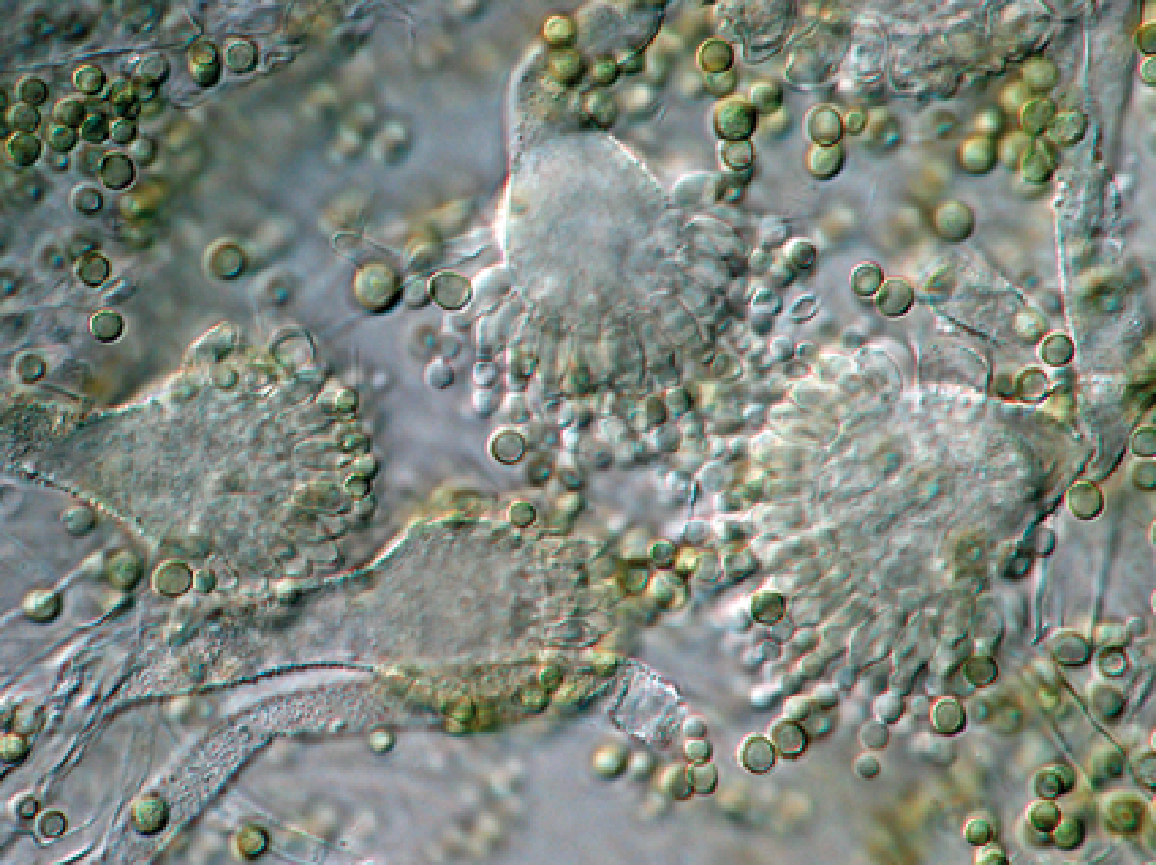 Regarding the microscopic characteristics, it presents a septate mycelia, macrosiphona, hyaline, branched, with long cenocitic conidiophores, near the vesicle a rough part is formed, the vesicles are spherical, covered in 360 ° and contain from 1 to 2 series of phialides [11], [7], with a radiated and biseriada head, and conidia of approximately 3.5μm [12]