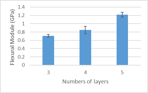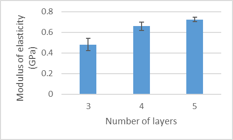 A maximum modulus of elasticity is obtained in the five-layer material being 0.725 GPa.