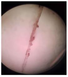 In Fig. 11, at 100X magnification, it is evident that the fiber is completely covered by the matrix, which shows that the fique was compatible with the polyester resin.