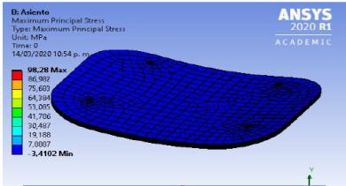 As can be seen in Table I, the maximum stresses obtained through the simulation of finite elements are less than the stresses obtained experimentally for both flexural and tensile, which allows validating that the chair will support the 100 kg-f load.