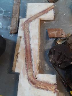 The different profiles of the chair structure were designed with a diameter of 3 cm. The fiber fabric was impregnated with polyester resin and rolled up on itself ensuring its compactness to be introduced into the mold. Long strips of the fabric were cut to ensure continuous pieces reinforced with the fiber. Fig. 21 shows the manufacturing process used.