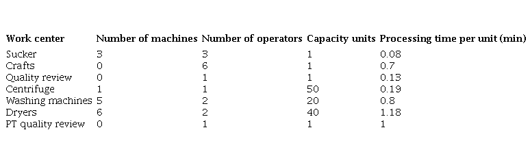 The number of machines, work centers, capacity, operators, and processing time per unit in minutes can be observed in Table II.