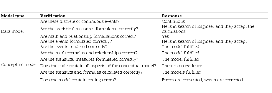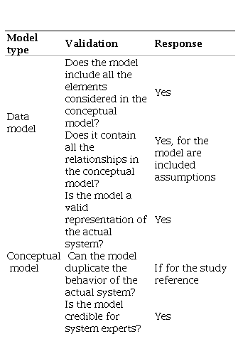 In the process of validation and verification (V&V) of the models, it is possible to perform techniques and tests that can be used both objectively or subjectively, making reference in an objective manner to all types of mathematical procedures or statistical tests such as hypothesis tests or confidence intervals [10].