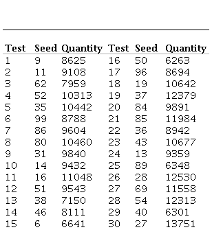 In Table III these values are presented, the seeds were chosen randomly, and no verification was used to guarantee their properties.