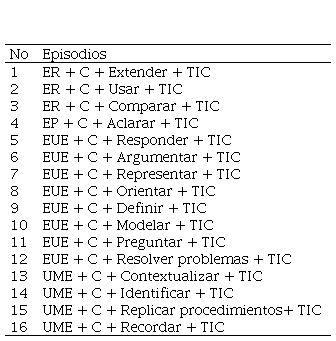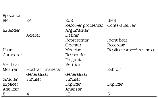 Con la información de la tabla VII se sabe qué acciones en los episodios los caracterizan y qué acciones comparten en la práctica. Por eso, aquellos episodios que tengan relación a través de las acciones son llamados episodios compuestos y los que no episodios simples. Esta relación de acciones, será usada para abordar las interpretaciones de cómo las actividades instrumentadas en situaciones de transformación inciden en el conocimiento para enseñar matemáticas.