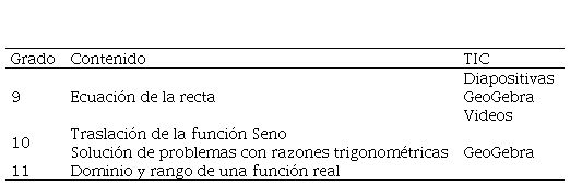 Esta metodología se desarrolla en 5 etapas, con 6 docentes de matemáticas que trabajan en colegios públicos de los departamentos de Risaralda y Quindío, egresados de la Maestría en Enseñanza de la Matemática de la Universidad Tecnológica de Pereira. Primera etapa: entrevista donde se reconocen las creencias y conocimientos matemáticos de los docentes para enseñar con uso de las TIC. Segunda etapa: observación no participante videograbada. Tercera etapa: planificación de una clase de matemáticas con uso de las TIC. Cuarta etapa: observación no participante de la clase, registrada en video. Quinta etapa: entrevista sobre la experiencia de haber utilizado TIC para enseñar el contenido matemático elegido.
