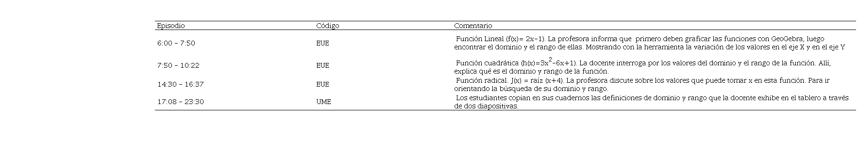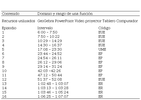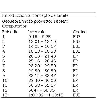 El interés de la investigación es observar y analizar los momentos de la práctica docente del profesor de matemáticas que sean situaciones de transformación [5]. Para ello, de ahora en adelante, se llamará episodio, al intervalo de tiempo de la clase de matemáticas, cuando el (la) docente desarrolla un contenido específico con uso del computador. Así, un episodio tiene: