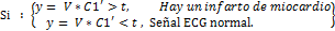 (21)Para la detección de un infarto de miocardio se utilizó la información suministrada por el vector (4.39) y el valor central calculado que fue de