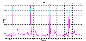 Al igual que en la detección de una bradicardia, cuando se detecta que en la señal existe una taquicardia, cambia de color las locaciones en las cuales se ha presentado dicha anomalía, para este caso cambia el color de las locaciones de las ondas R a un color rojo, tal como se ilustra en la Fig. 9.