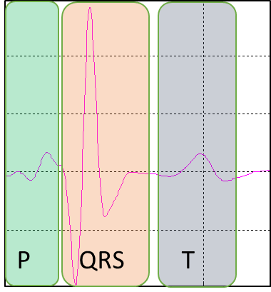 Para calcular la frecuencia cardiaca de la señal ECG, se utiliza las locaciones temporales de la onda R, la frecuencia parcial se obtiene por: