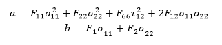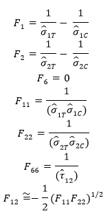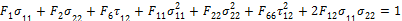 En este trabajo se aplica la teoría de falla de Tsai–Wu en (7), ya que tiene mayor cercanía a los datos experimentales y es una de las más ampliamente usadas [35]: