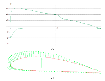 Las condiciones de flujo tomadas en el análisis fueron una velocidad V= 20 m/s, una densidad ρ= 1,225 kg/m3 y una viscosidad cinemática de 1,5E-5 m2/s. Finalmente, con la longitud de cuerda igual a la longitud característica es posible hallar el número de Reynolds, dando como resultado 200000. Siguiendo las recomendaciones de operación [29], y con los anteriores datos de entrada, se obtiene la distribución de presión sobre el perfil NACA 4415, como se muestra en la Figura 2.