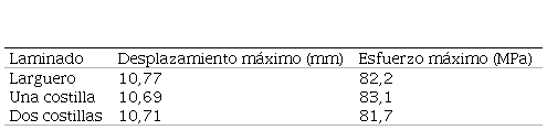 En el primer caso solo se adicionó el larguero a 3,75 cm de la punta del ala. En el segundo caso se adicionó una costilla en la mitad del ala y se mantuvo el larguero, el mismo laminado aplicado en el alma del larguero se usó en la costilla. Continuando con los mismos laminados, en el tercer caso se adicionaron dos costillas cada 0,5 m desde la raíz del ala. Los resultados obtenidos de los modelos numéricos se muestran en la Tabla VII.