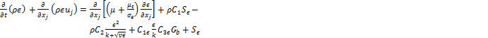 (5)The coefficients values of the convectional k – ε model are: