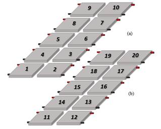 The voltages generated by the 10 TEMs of the upper side will be the same or very similar to the voltages generated by the 10 TEMs of the lower side of the heat exchanger due to the symmetric geometry. Therefore, only the upper side of the heat exchanger will be analyzed.