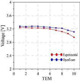 On the other hand, through OpenFOAM®, the surface temperatures of the outer wall of the heat exchanger were obtained. Using these values and the TEMs characterization, which appears in the manufacturer’s datasheet, it was possible to know the voltage values that the thermoelectric modules would generate with the temperatures that the simulations showed.