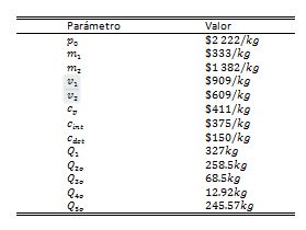 tal que maximiza la función de utilidades (Ec. 12). Por lo tanto, los valores de las cantidades al resultar de garantizan que éstas maximizan la utilidad de la cadena de suministro. Los valores son mostrados en la Table 2.