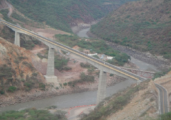 En el contexto nacional, el viaducto atirantado Cesar Gaviria Trujillo (Colombia), mostrado en la figura 5 y con luz central de 210 m fue caracterizado dinámicamente por [72] con el fin de realizar un análisis de vulnerabilidad sísmica y capacidad de carga del puente. Se realizaron ensayos geofísicos, pruebas de carga estática y dinámicas entre otros ensayos y se desarrollaron modelos numéricos en elementos finitos utilizando el software de análisis estructural SAP2000©.