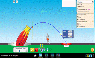 El simulador interactivo presento la opción de activar el modo vectorial para la velocidad y aceleración del movimiento, por lo cual los equipos de trabajo verificaron el comportamiento de cada vector mientras el objeto realizó su trayectoria parabólica.