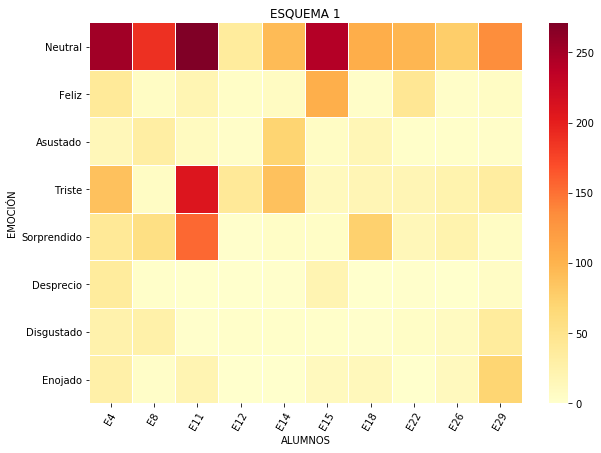 En el siguiente mapa de calor de la Fig. 10, basado en el conteo de emociones expresadas y sentidas podremos observar lo que ocurrió en el EQ1.