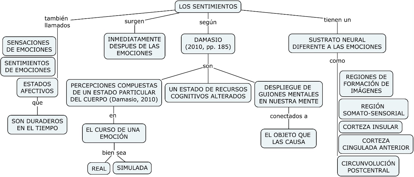 En lo que se refiere a los sentimientos en la Fig. 2, se muestra un mapa conceptual en el cual podemos apreciar la diferencia entre sentimientos y emociones.