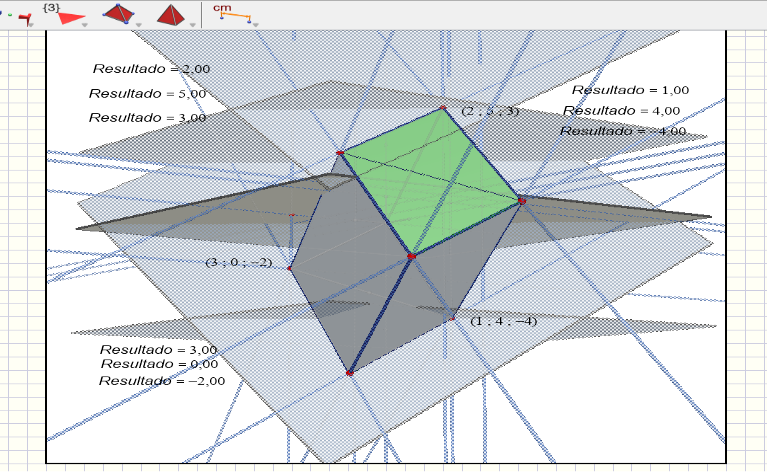 En la estructura mental de proceso del concepto geométrico de la operación de semirrectas que se manifiesta a través del uso del software Cabri 3D, el estudiante construye los puntos de cada tripleta, utilizando, rectas paralelas y perpendiculares –operándolas indistintamente, con proyecciones–, ubicando el punto de las tripletas, con las semirrectas, que salen del origen.