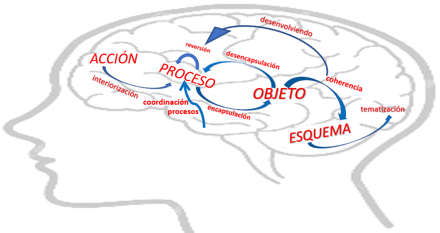 Con el fin de abordar nuestro interés investigativo, hemos utilizado los elementos de la teoría APOE (Acción, Proceso, Objeto y Esquema), porque su base epistemológica que se sustenta en la abstracción reflexiva de Piaget nos permite interpretar el pensamiento lógico-matemático en una situación matemática especifica. Dubinsky [13] propone las estructuras mentales de acción, proceso, objeto y esquema, para construir un concepto matemático y unos mecanismos mentales –Interiorización, Coordinación, Reversión, Encapsulación y Desencapsulación, Coherencia, Desenvolviendo y Tematización–, para modelar la construcción cognitiva de un fragmento de la matemática. Dicho modelo recibe el nombre de descomposición genética.