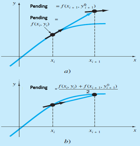 It is a method that to improve the estimation of the slope uses the determination of two derivatives in the interval (one in the initial point and another in the end). The two derivatives are then averaged in order to obtain a better estimate of the slope over the entire interval. This procedure is presented in graphic form in Fig. 3.