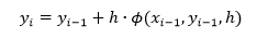 corresponds to the value of the ordinate of the numerical solution of each method obtained according to: