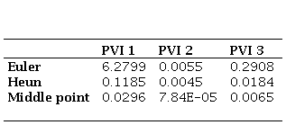 The truncation error of the series is used in the numerical methods for solving initial value problems. Of Taylor to measure the approximation to the exact response of the differential equation, however, the methods discussed in this paper are derivations of the Euler method, which include some artifacts that distance them from the Taylor series of order 1, reason why it is decided to implement the mean square error (EMC) for each point of the grid of the numerical solution of each method, that is: