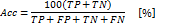 stand for Accuracy, Accuracy per class, Recall, Precision, and F1-score, respectively. Namely, TP, TN, FN, and FP represent the True Positive, True Negative, False Negative, and False Positive rates. Specifically,