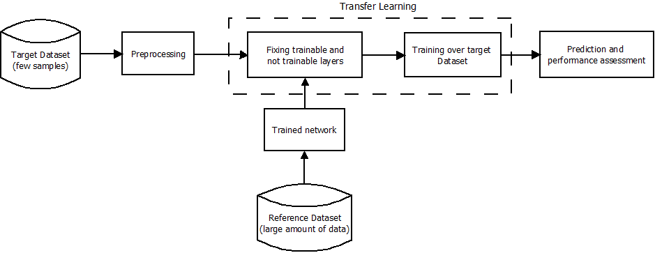 Transfer learning has recently emerged as an alternative to reuse pre-trained models (on large databases) to improve a specific task's performance and robustness [16-18]. Such a strategy aims to exploit the ability to directly assign the knowledge acquired by a network model to solve similar problems as an alternative to lead machine learning problems, i.e., image-based recognition, from small datasets. Notwithstanding, the main problem relies on identifying an effective use of this approach by enhancing a pre-trained network's parameters based on the new instances [19]. In particular, for image-based object recognition problems, some CNN-based approaches based on pre-trained architectures are proposed. AlexNet, GoogleNet, VGG-16, and ResNet-based networks are commonly applied on the well-known CIFAR and ImageNet datasets. Nonetheless, low accuracy is obtained, and complex hyperparameter tunning is required, besides the low resolution and noisy data challenges [21,22].