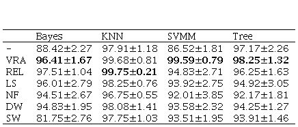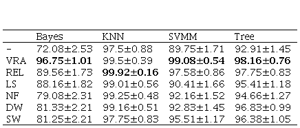 · Self-Weight Ranking (SW). Unsupervised method, technique, it codes the feature relevance in terms of a self-similarity measures [5].