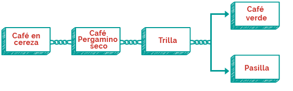 El segundo eslabón de la cadena es la planta de beneficio a través de la cual se puede obtener el café pergamino seco que puede ser vendido a la cooperativa o a los comercializadores privados, posteriormente el café pergamino seco beneficiado en la planta agroindustrial de Belén de Umbría, es trillado por Almacafé; el tercer eslabón dentro de la cadena es el operador logístico de la FNC, aquí a través de la trilla se extrae la almendra que se exporta. Es importante añadir que Almacafé siguiendo los lineamientos de la FNC, da una clasificación secundaria a los cafés mal beneficiados, dejando para consumo al interior del país los de menor calidad, marcándolos como pasilla y al mismo tiempo quedando excluidos de ser vendidos al exterior; la otra clasificación es la de café verde o café excelso, el cual atiende las condiciones y necesidades del mercado en el exterior que paga buenos precios por diferentes cafés de alta calidad.