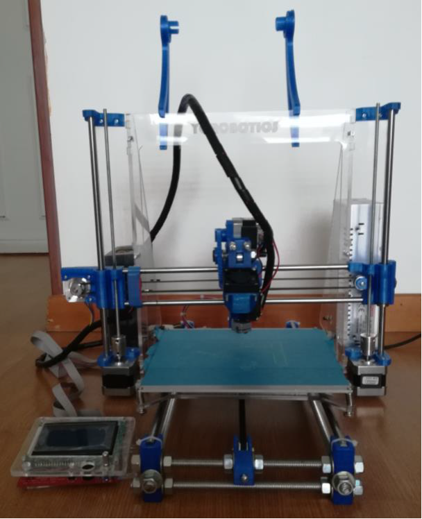 For prototype printing, a Prusa I3 reference hybrid printer is implemented as shown in Fig. 1, with a printing bed of 20cm X 20cm X 20cm with a maximum temperature range of 70° C, extruder with a maximum temperature of 250° C and a 0.4mm extrusion nozzle.